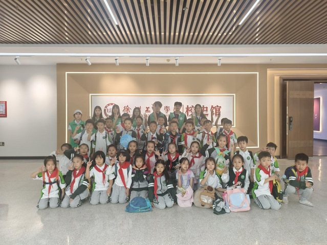 早上8时许,研学学子在我校南门集合,在校训景观石前,孩子们与我院管理工程学院志愿者合影,眼中满是对大学生活的好奇与向往。校史馆内,志愿者通过老照片、实物讲述学校发展历程,帮助孩子们直观感知“大学”模样;淮海地区革命文化博物馆红中,讲解员结合“徐州会战”“抗日战争”等历史图文与战役地图、壁画,以生动故事传递先辈家国担当,“传承红色基因”的种子悄然播撒。活动中,学生们还在图书馆交流、校园广场休息活动,记录见闻、分享收获。