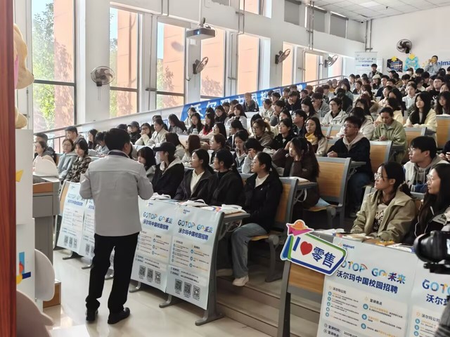 招聘会上,沃尔玛招聘团队采围绕“全球布局+中国深耕”主线,展示了超400家国内门店、智能供应链中心以及线上线下融合的全渠道零售服务,立体呈现企业的规模与实力,活动通过职业问答小游戏为在场同学提供精美礼品。宣讲会后企业开展一轮面试。